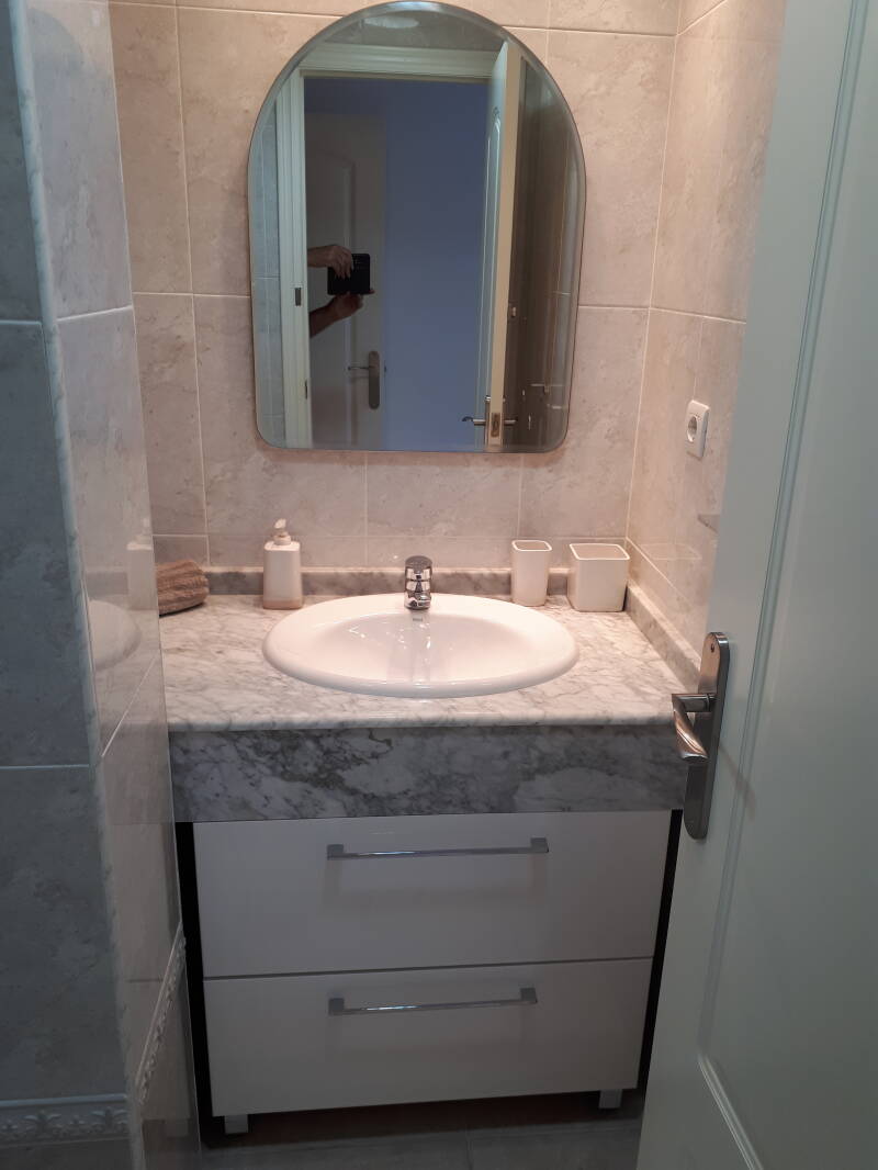 La chambre principale, avec salle d'eau privative, la déco est soignée, il y a un grand placard de rangement