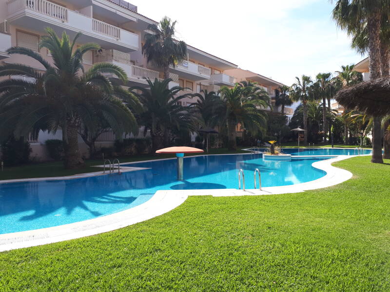 La résidence Nou Fontana fait partie des plus belles résidences de Javea. D'une part pour sa proximité de la plage de l'Arenal, mais aussi par la qualité de ses prestations : grande piscine à débordement, parc arboré avec pelouse, une salle de sport très bien équipée avec salle de douches, une piste de paddel. Elle est parfaitement sécurisée : gardien, vidéosurveillance...